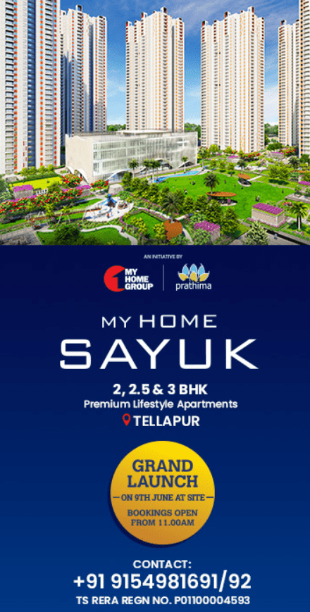 My Home Constructions Pvt. Ltd H NO 1-123,8TH FLOOR, 3RD BLOCK, MY HOME HUB, HITECH CITY, MADHAPUR, HYDERABAD - 500 081. www.myhomeconstructions.com
